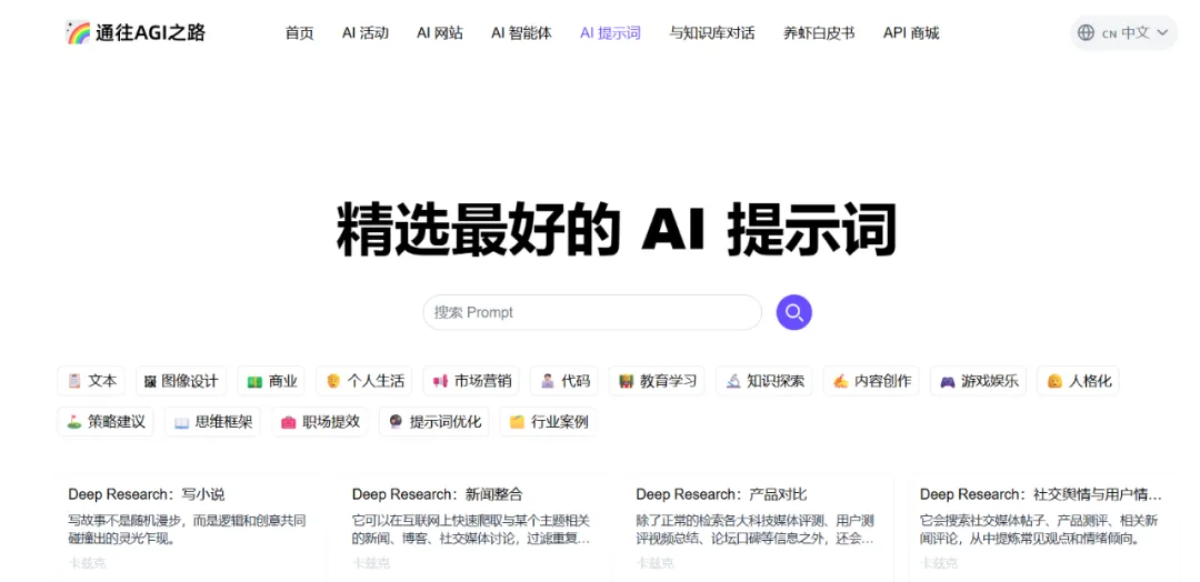 WayToAGI 提示词库,专业精选 Prompt,覆盖文案、脚本、运营全场景。一键复制、结构化模板、大神级玩法 ,精准提升工作效率。(软件地址:https://www.waytoagi.com/zh/prompts)