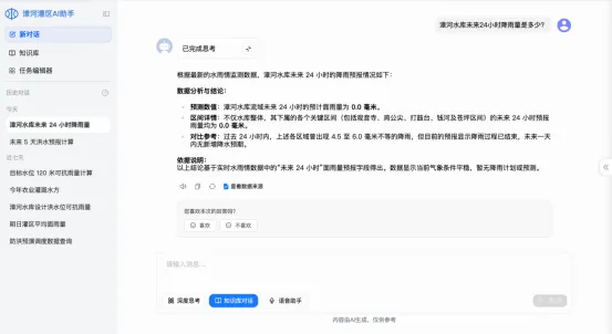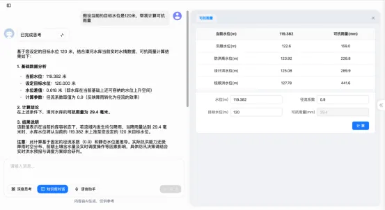 它懂水利——不仅接入Qwen、DeepSeek、GLM等通用大模型,更深度融合水文模型、水力学模型、水库调度模型、水资源调度模型、水质模型等专业水利模型。