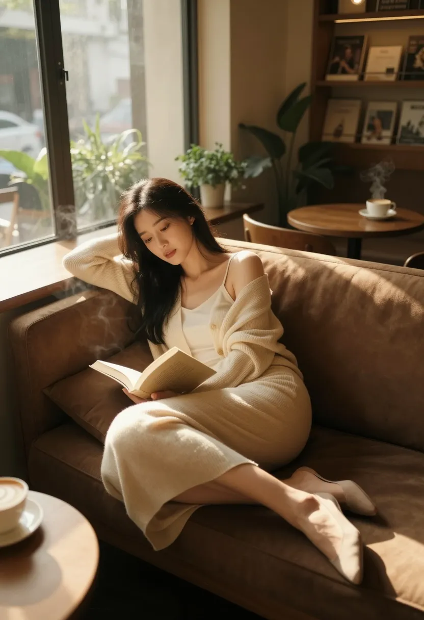 今天给大家带来一组精彩的午后咖啡·窗边松弛主题照片。亚洲女性在暖调咖啡厅中的慵懒午后时光,米色针织与长裙搭配,窗光、咖啡蒸汽与书页交织,呈现知性而松弛的日常美感,性感含蓄能过审。,每一张都充满了独特的魅力和艺术感染力。让我们一起来欣赏这些令人惊艳的瞬间吧。