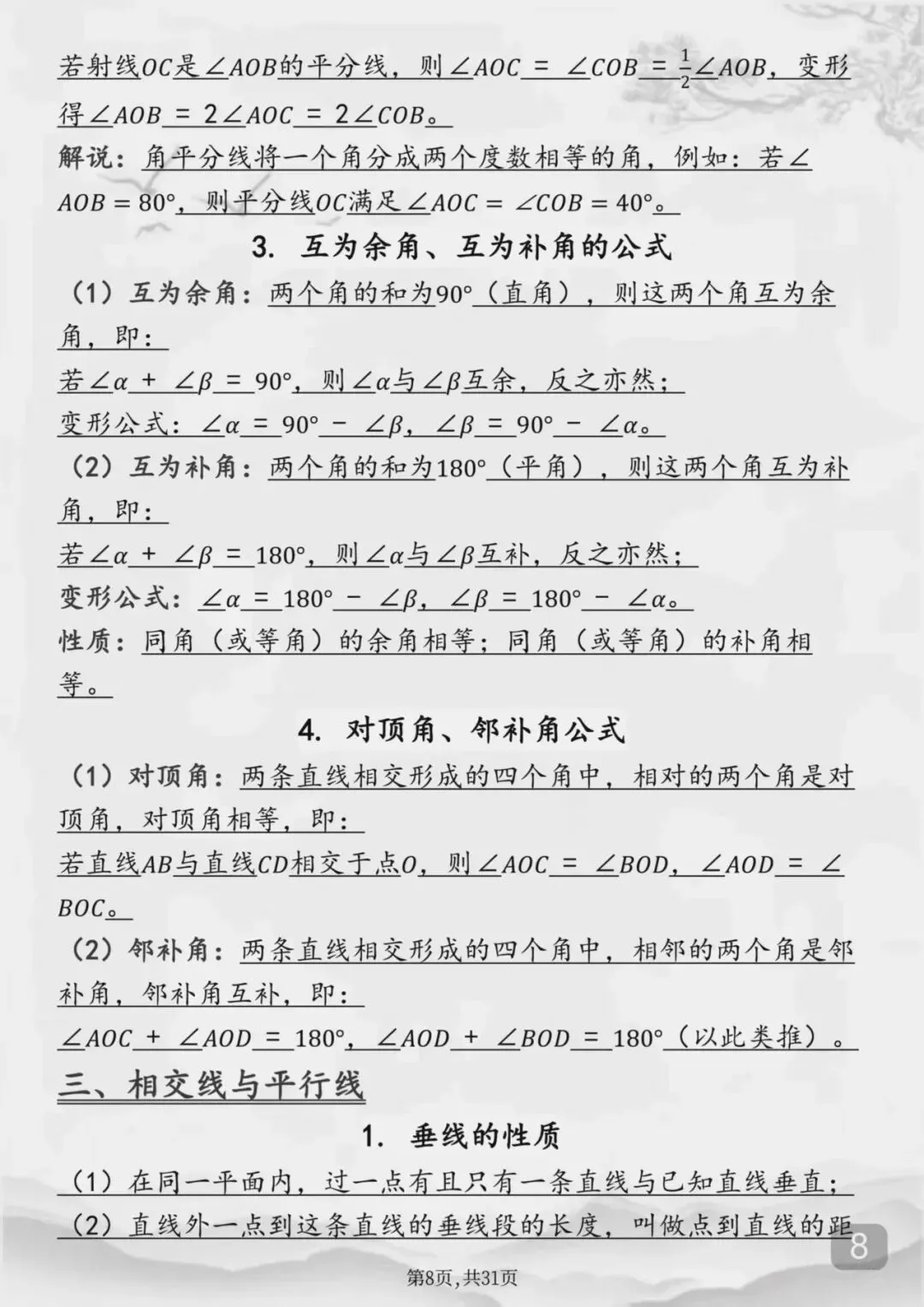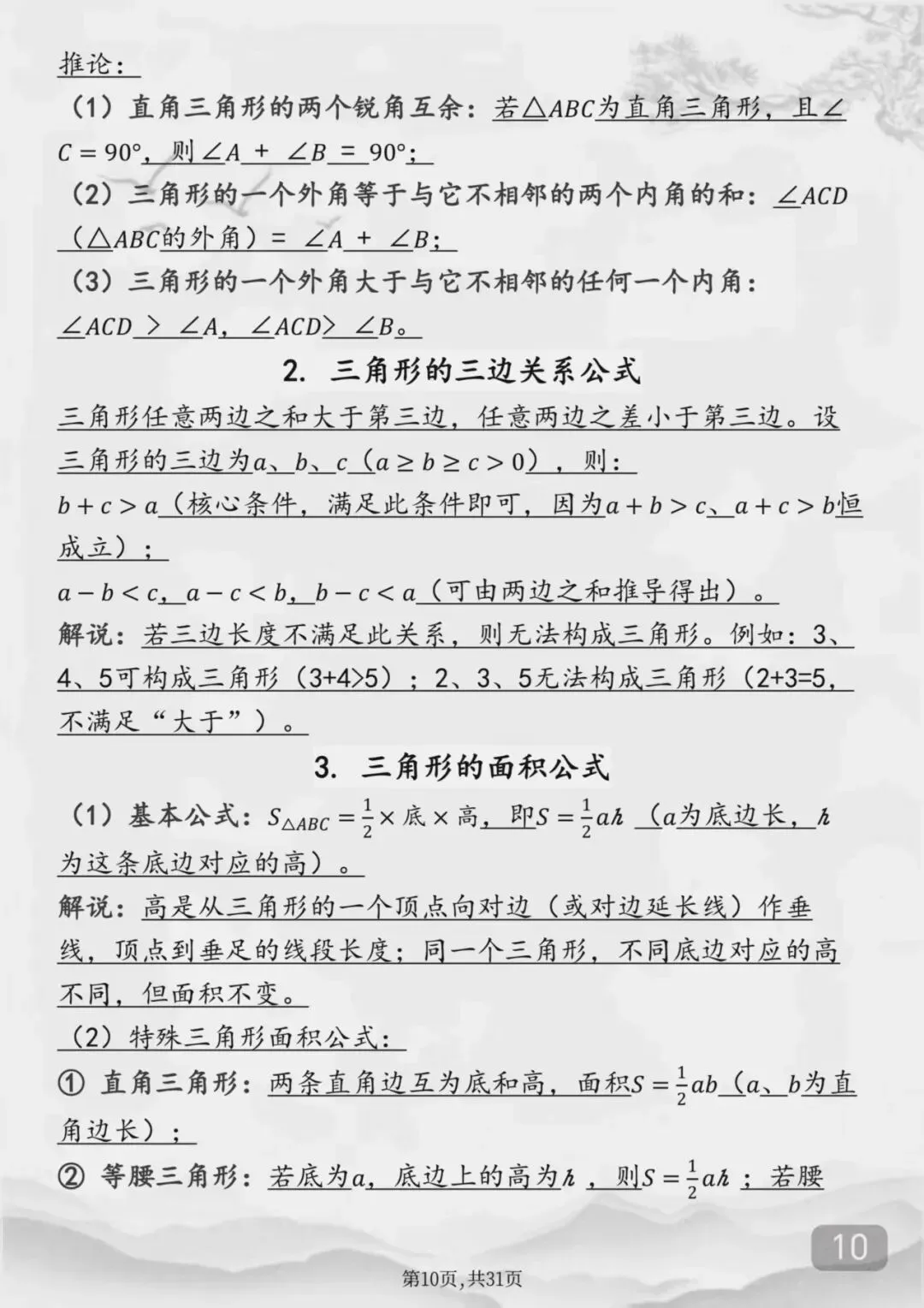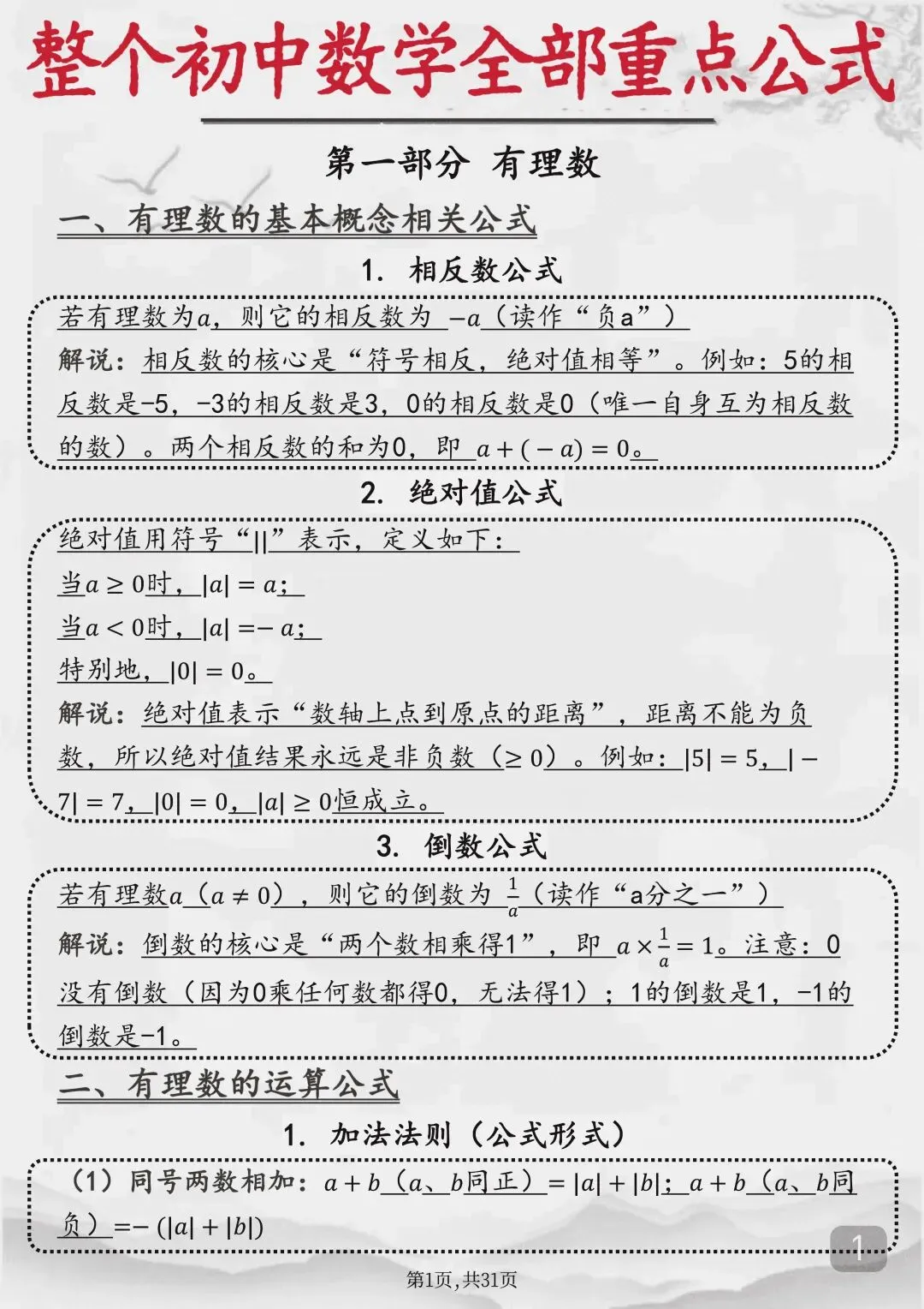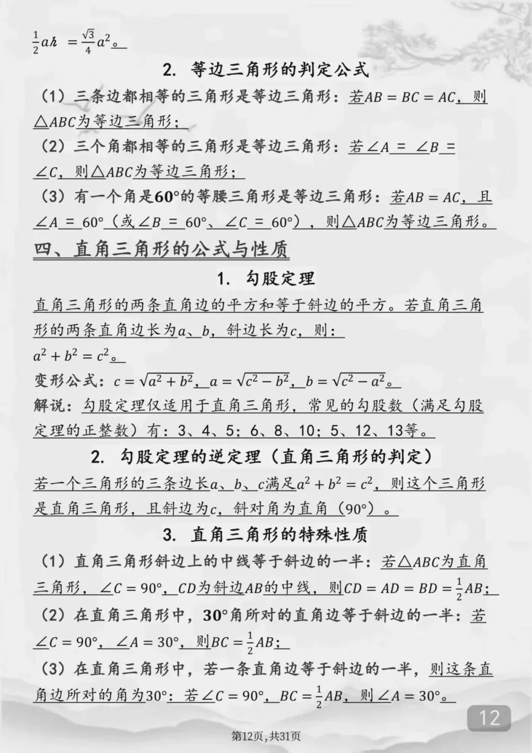 整个初中数学全部重点公式(Word打印版)特别详细