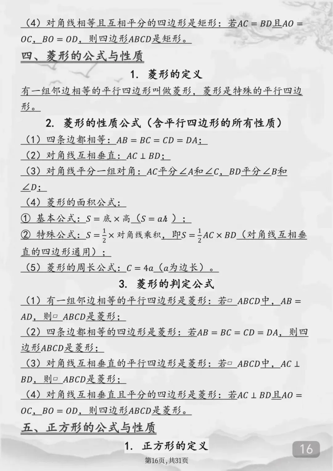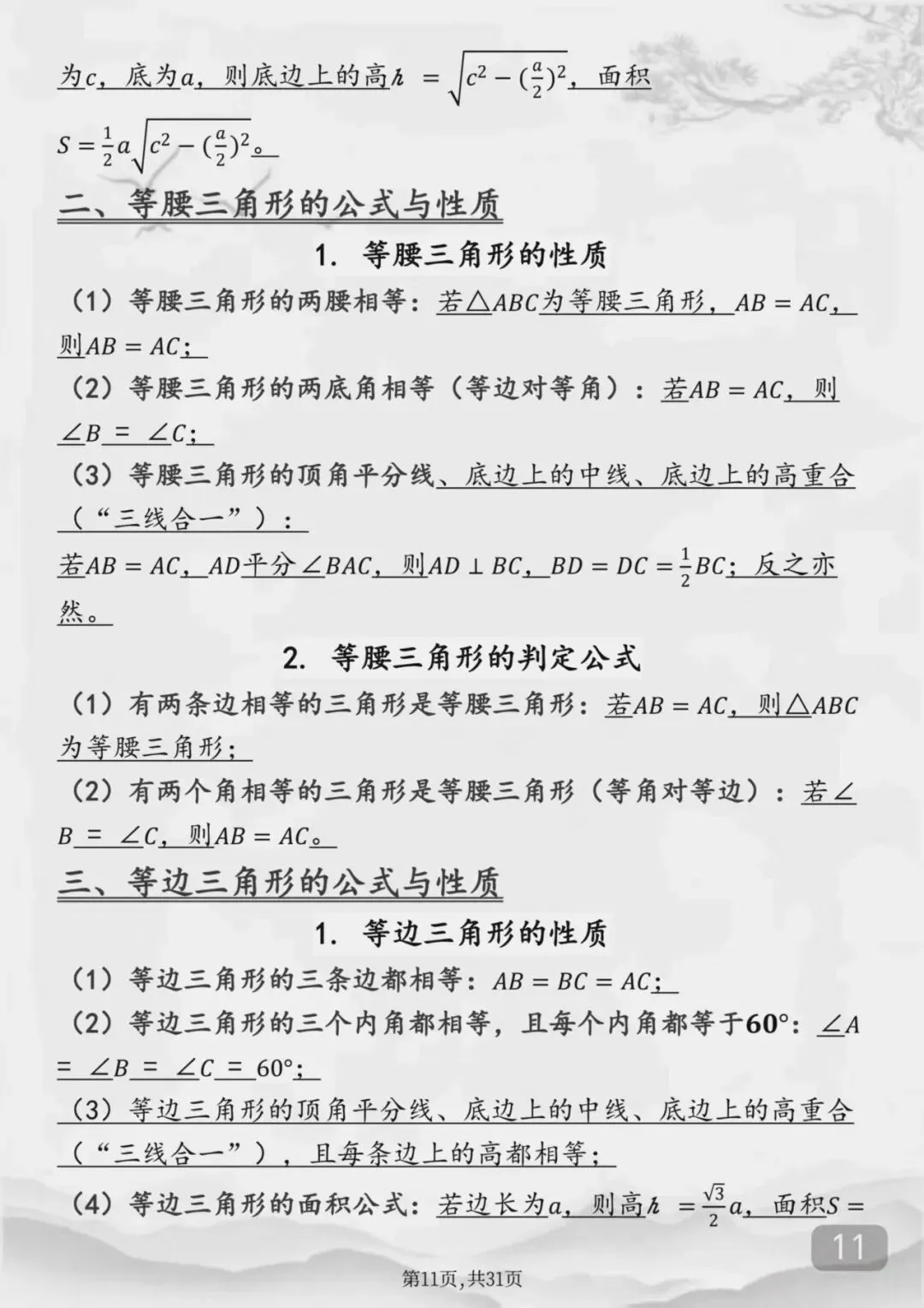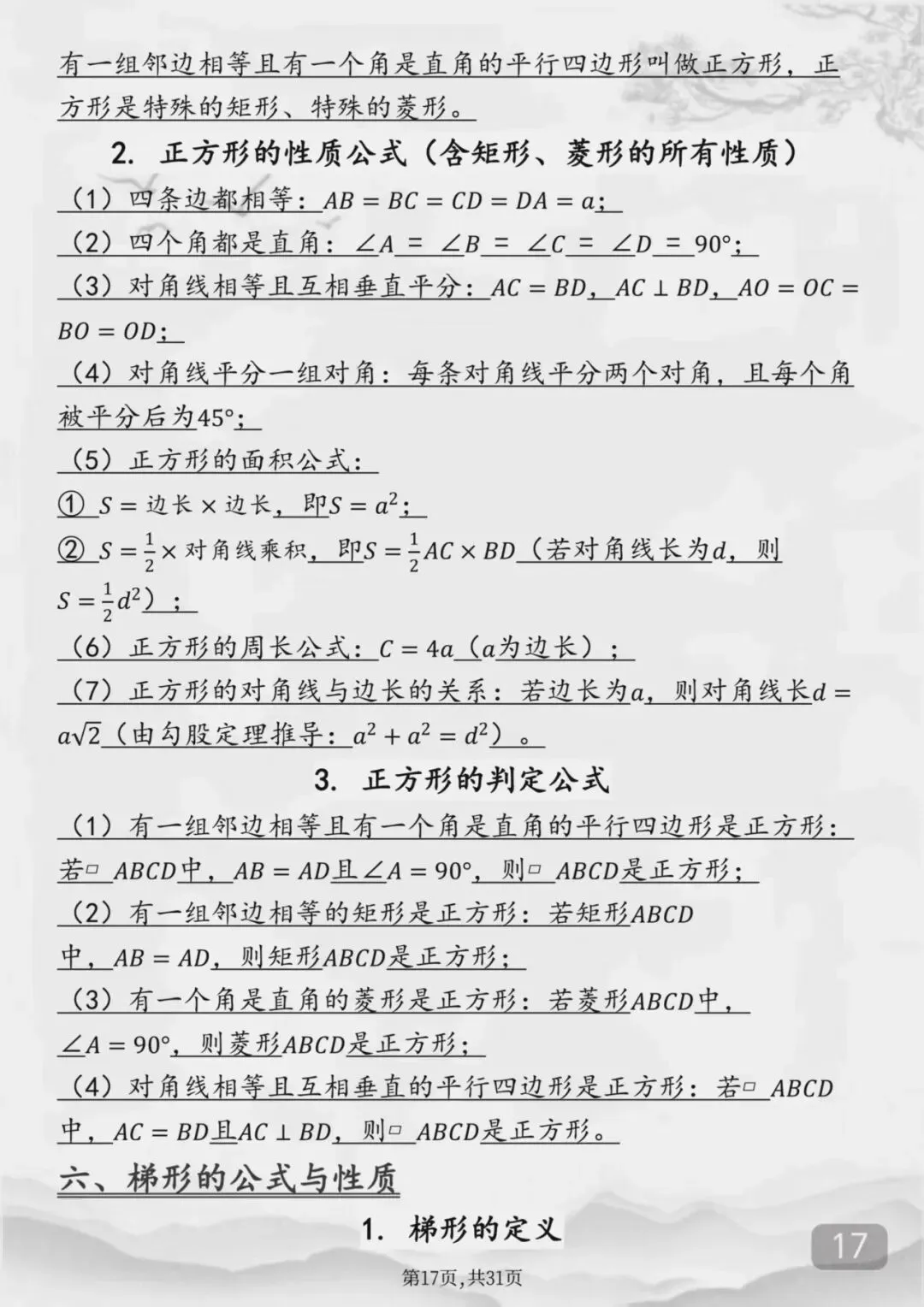整个初中数学全部重点公式(Word打印版)特别详细