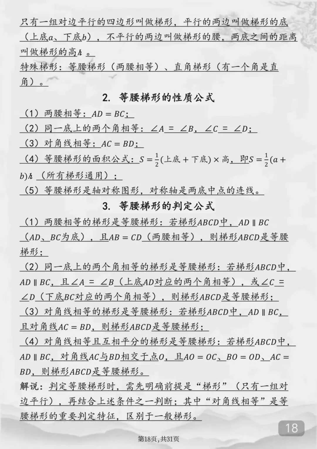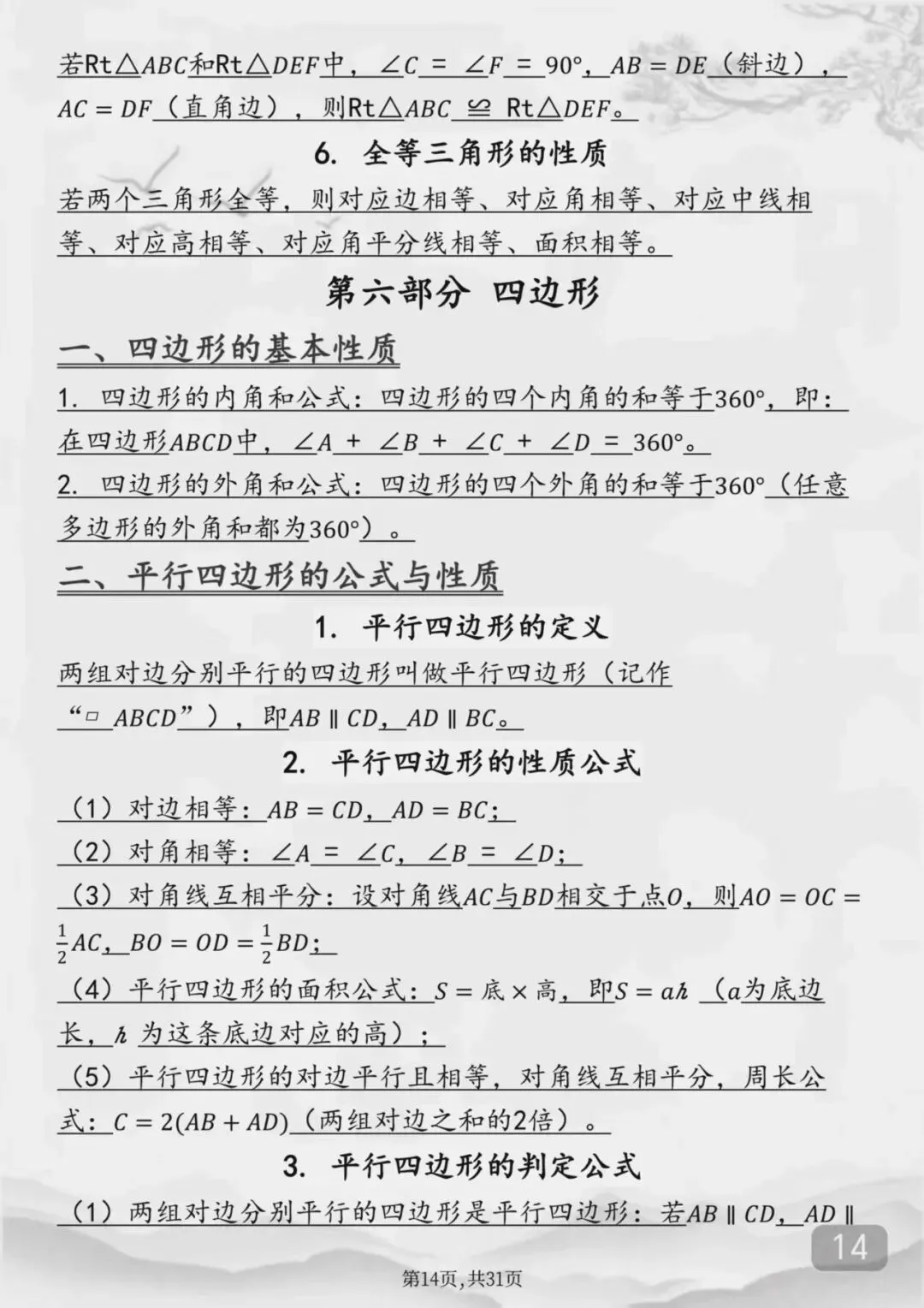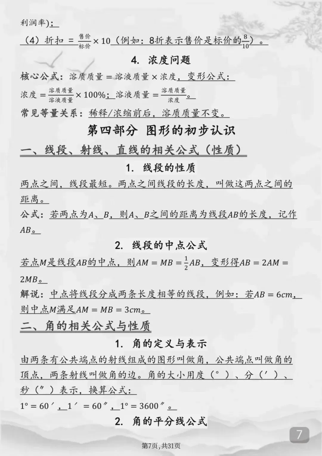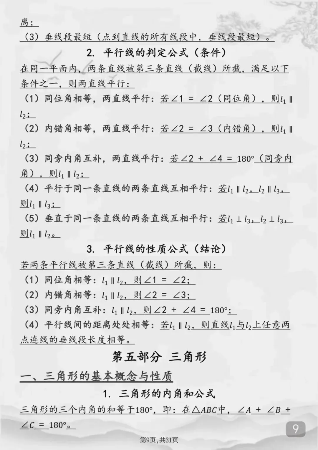 整个初中数学全部重点公式(Word打印版)特别详细