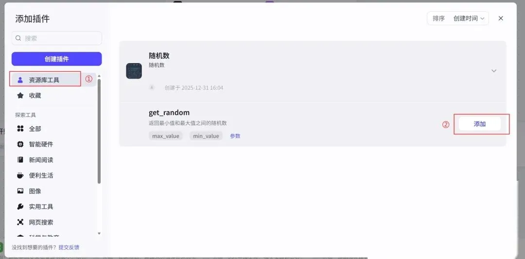 去资源库里的工具里找,照样可以把插件加到工作流里。