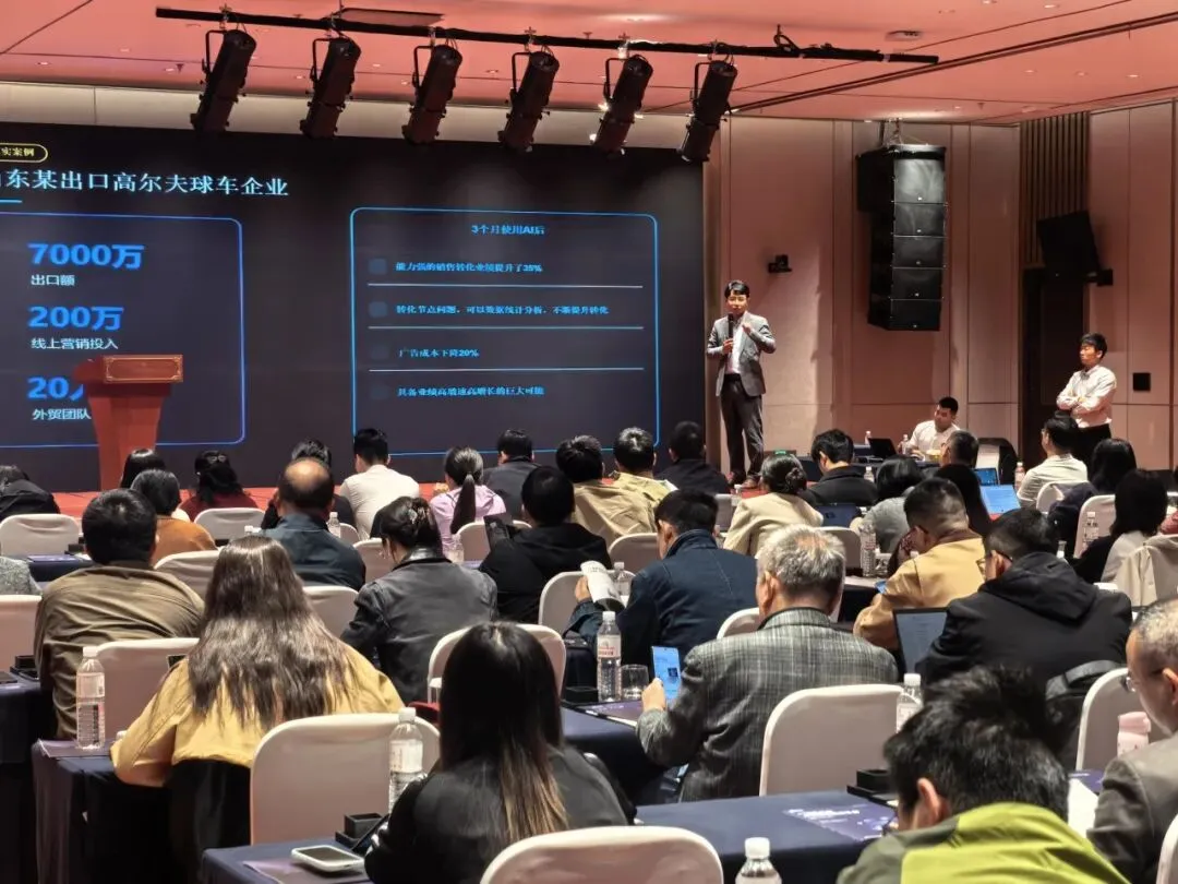 除了产品实操,实战案例更是干货满满,用真实落地成效印证AI赋能外贸的价值。星谷云KA总监张东敏结合自身操盘经验,用三个典型案例拆解AI如何破解销售漏斗痛点、实现效率飞跃:从高尔夫球车出口额实现翻倍增长,到新能源上市企业借助 AI 仅用 2 个月便达成 100% 线索跟进率;再到东南亚出海电动车品牌通过 AI 助力多人客服团队,18 天高效触达 3200+ 终端消费者,成功完成 5 笔首单成交并实现全链路数据闭环。一系列真实案例,生动展现了 AI 在企业出海全场景中的落地价值与实战效能,为在场企业带来了极具参考意义的启发与思路。