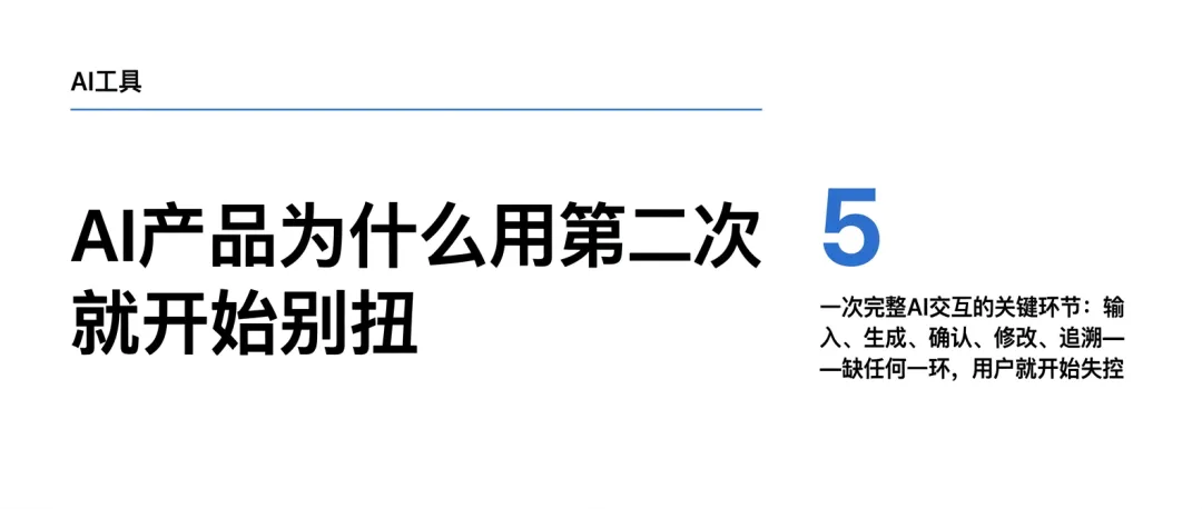 一次完整AI交互的关键环节:输入、生成、确认、修改、追溯——缺任何一环,用户就开始失控