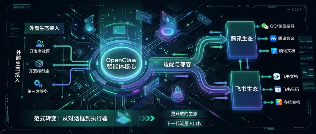 腾讯和飞书的“急”,其实是看透了未来的真相:在 Agent 时代,没有生态,只有插件。如果不主动成为其中的一部分,就只能等着被用户遗忘。