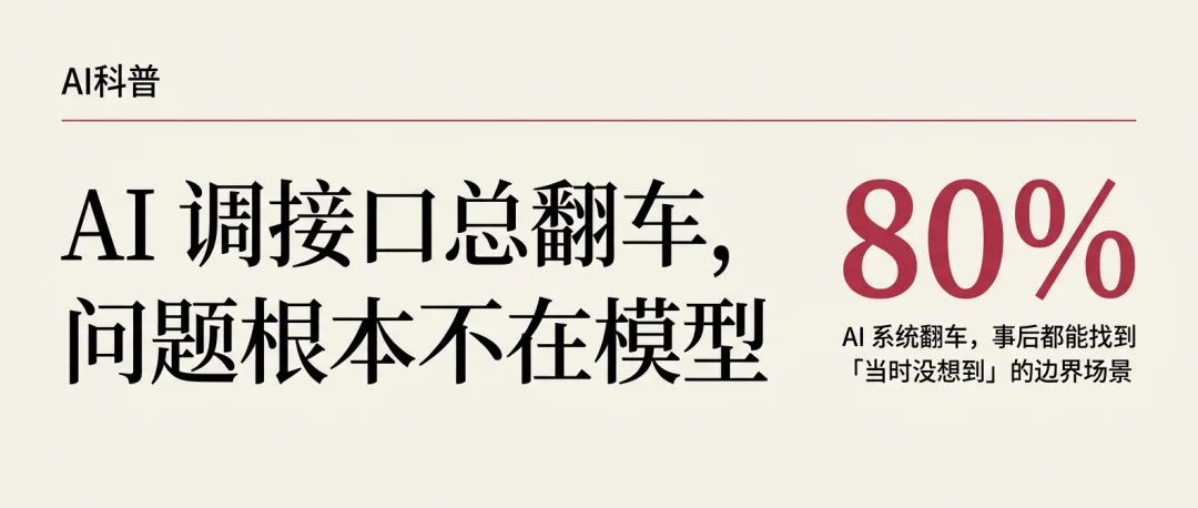 大多数团队在 AI 接口翻车之后,第一反应是换模型、改提示词。但真正的问题藏在别处——不是模型不够聪明,而是整个系统从一开始就没做好接住「聪明但不稳定」这件事的准备。