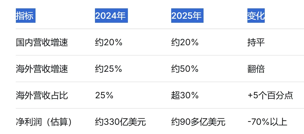 如果按照此前媒体报道的2024年净利润约330亿美元来估算,2025年的净利润大约只剩90多亿美元。