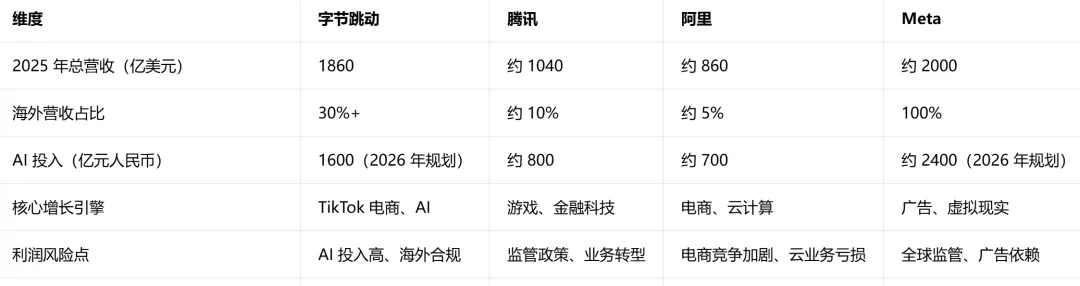 这不是一家公司的问题。放眼全球,Meta、微软、谷歌都在加码AI资本开支,国内阿里、腾讯同样不遑多让。但字节跳动的投入规模,仍然令人咋舌。