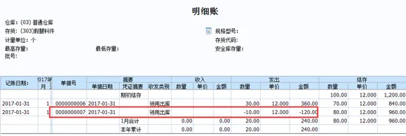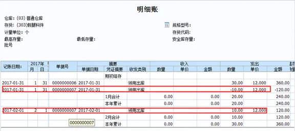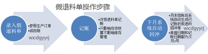 查询存货明细账:假退料的单据显示在明细账中(所以如果有假退料业务,库存和存货月末对账会有差异),此时成本退回,生产成本科目减少,库存商品科目增加。
