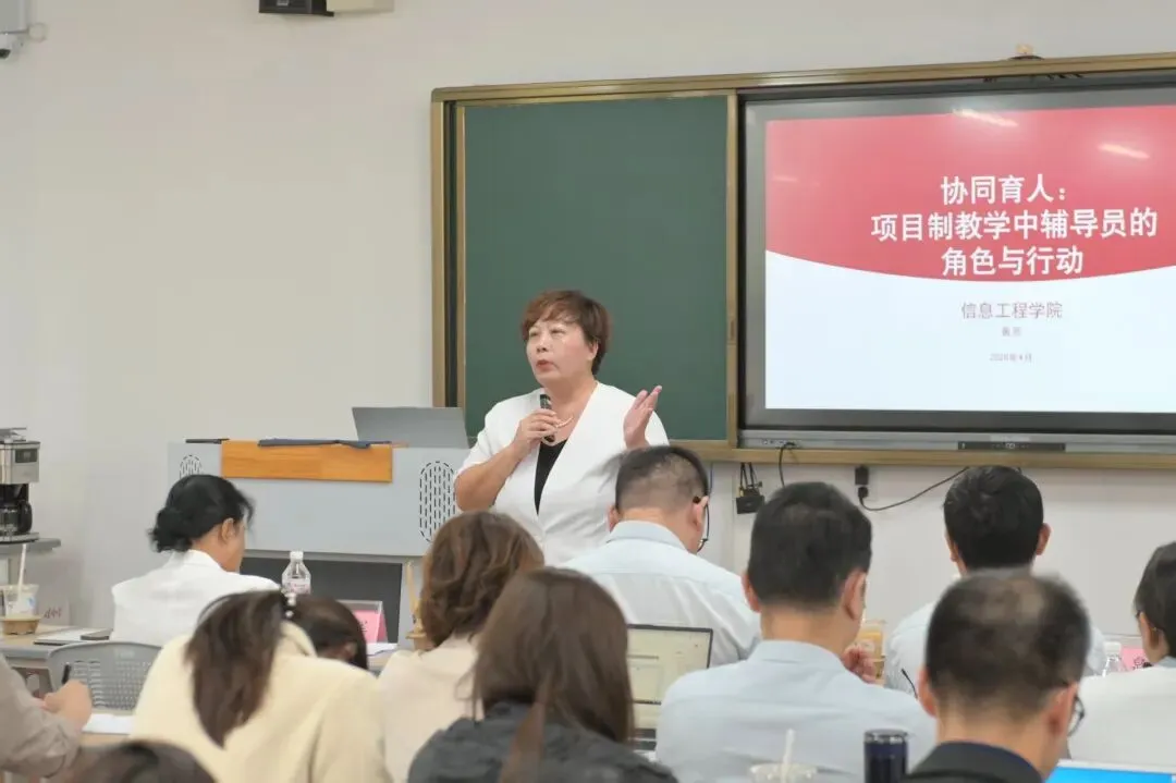 信息工程学院副院长黄芳围绕《协同育人:项目制教学中辅导员的角色与行动》,直面学生对项目制教学的困惑与吐槽,厘清传统教学与项目制教学的核心差异——项目制教学的本质是学生通过完成真实项目习得知识与能力,是学校人才培养系统性改革的核心举措。项目制并非“老师不讲课”,而是让学生在真实任务中“做中学”,练就解决问题、适应职场、打造简历硬通货、竞赛孵化的核心能力。
