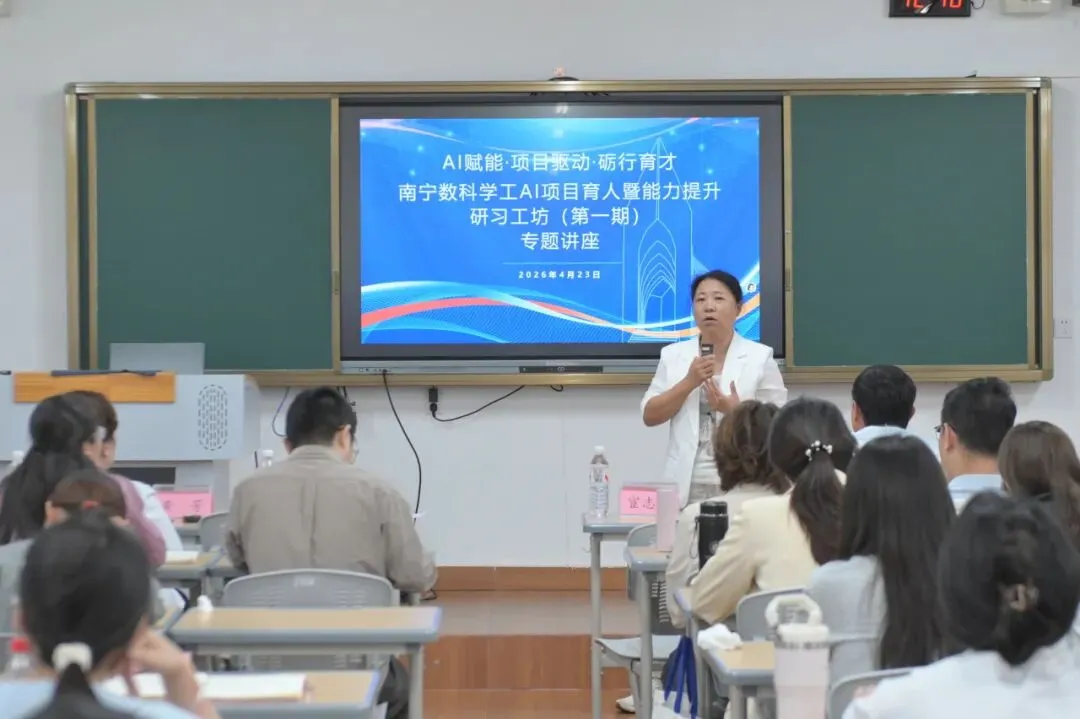 为深入把握AI时代高等教育体系重构的发展机遇,全面落实芯位教育时代育人要求,系统性提升我校学工队伍AI素养与协同育人能力,4月23日,南宁数科学工AI项目育人暨能力提升研习工坊专题讲座在三教104举办。