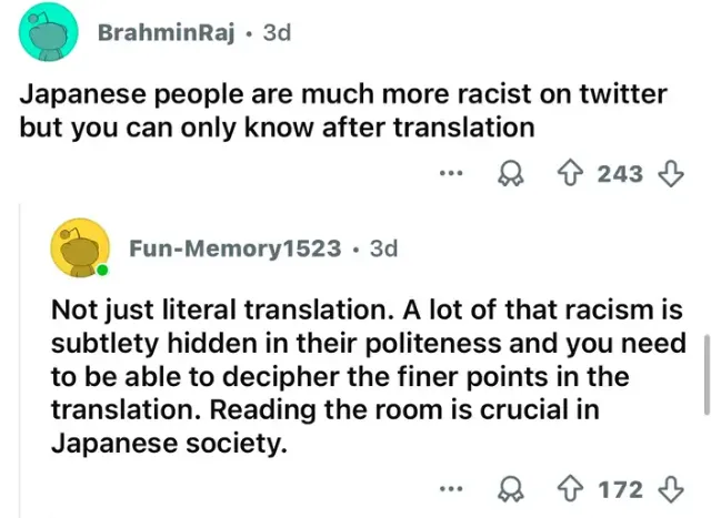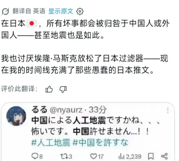 本来因为互联网推送机制导致的语言茧房,因为ai翻译和推送的改变,一下子让真正的日本网络言论暴露出来