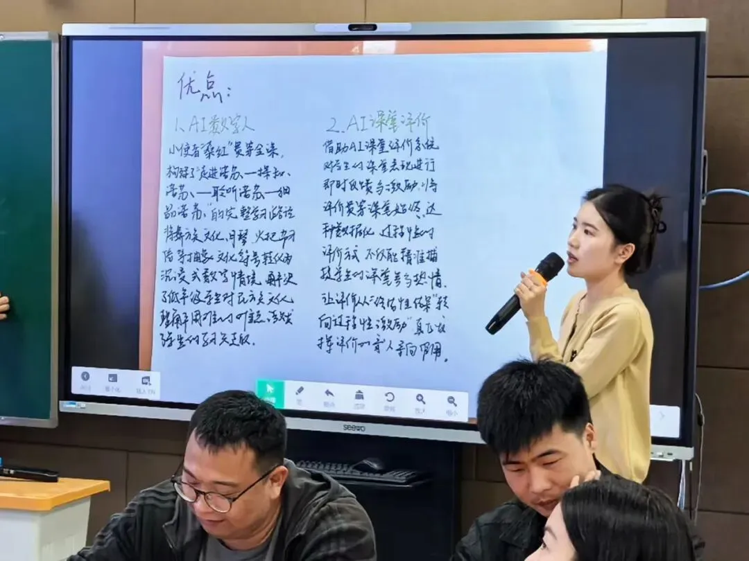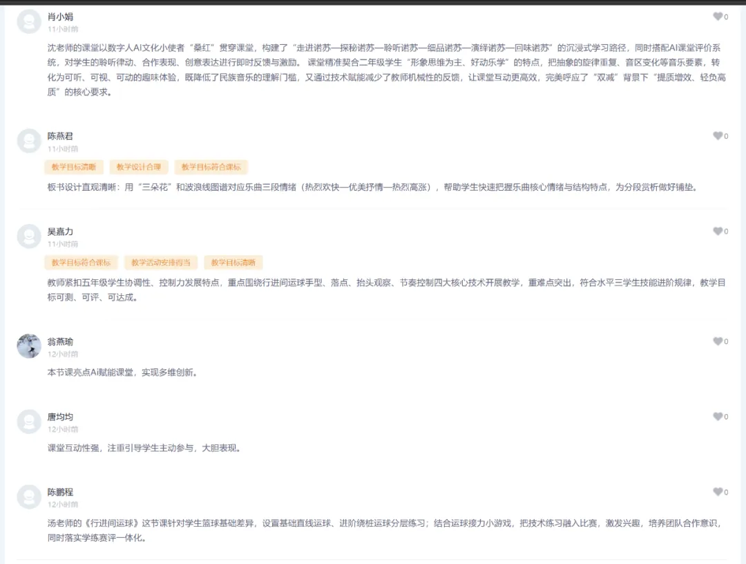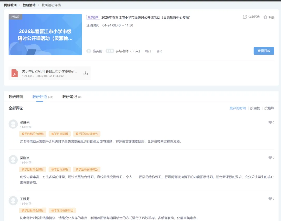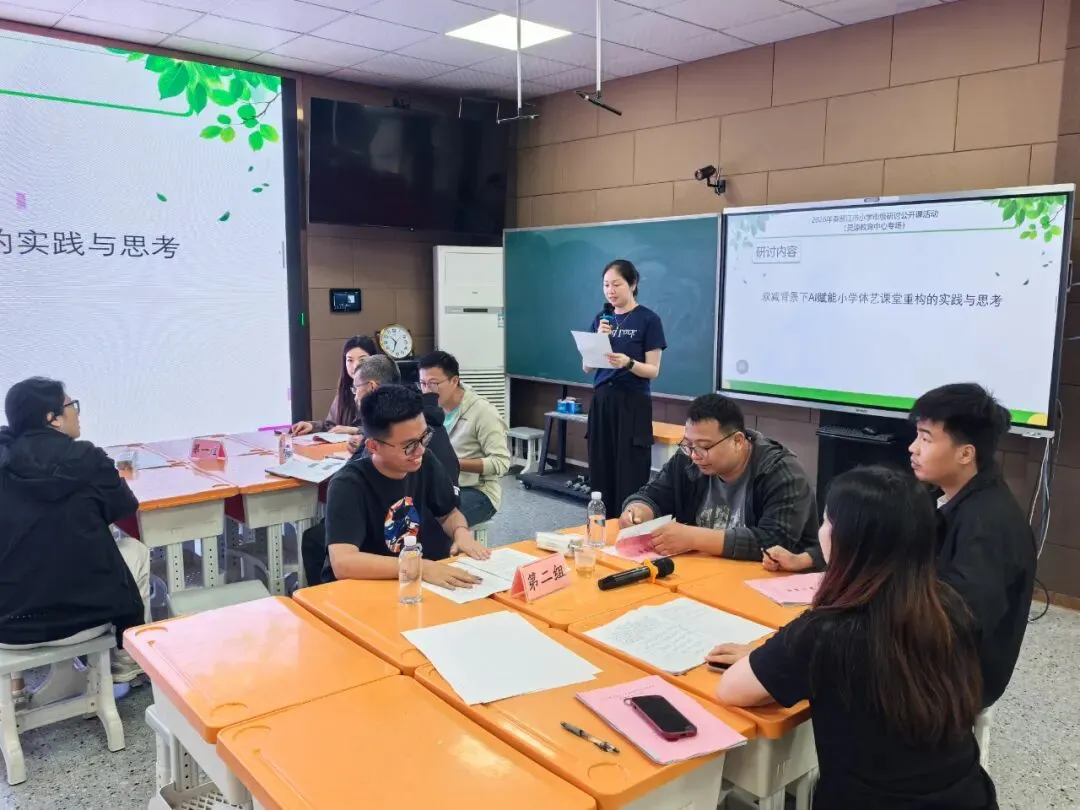 公开课结束后,两节课的指导教师分别进行课例说明。与会教师围绕“双减背景下AI赋能小学体艺课堂重构的实践与思考”主题展开卷入式研讨。老师们踊跃交流、畅所欲言,在思维碰撞中凝聚教学共识、提炼优化策略。此次活动同步在泉教育平台进行直播,参会教师还及时在平台上发表观课思考、上传教研笔记,留下思考痕迹。