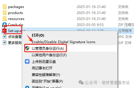 第三步:打开解压后的文件夹,找到安装文件,以管理员身份运行。