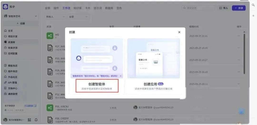 第一步很简单,先在Coze里新建一个智能体。