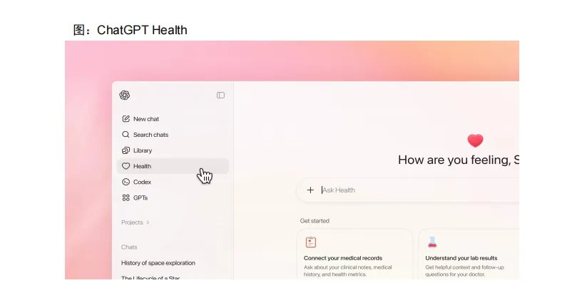 ChatGPTHealth正式落地医疗场景,成为OpenAl首个垂直行业旗舰产品。据OpenAl透露,平台每周收到的健康与养生类咨询量已超2.3亿人次。其产品核心如下: