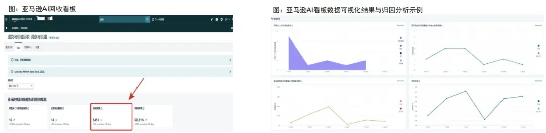 回收页面:实时监控退货商品的处置情况,展示“已售二手商品数量”“回收总销售额”“净回收率”等指标,提供180天回收数据趋势图。