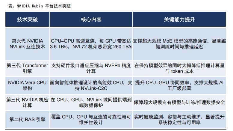1月5日推出全新Al平台“VeraRubin”,,首个采用极致协同设计、集成六款芯片的Al平台,现已全面量产。由Vera CPU、Rubin GPU等六款芯片组成。涵盖RubinGPU、Vera CPU、NVLink 6等组件。该平台预期将在2026下半年进入市场,并提供更高推理性能、更低运行成本。1月6日推出“DLSS4.5”,引入第二代超分辨率和“6x多帧生成”能力,提升画质与高帧率表现。支持超过250款游戏/应用,并计划在新系列显卡上春季发布完整功能。