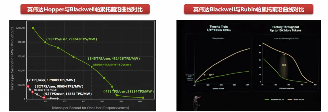 英伟达Blackwell VS Rubin:根据2026年1月英伟达CES大会,Rubin系列产出效率有望在Blackwell基础上再提升10倍。