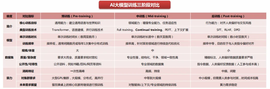 训练算力:主流模型厂商继续进行预训练,同时关注持续学习和强化学习。