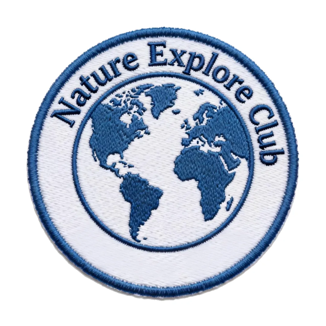 3.情景设计:“自然探索俱乐部”的徽章Nature Explore Club:圆形徽章,世界地图的纹理,配文Nature Explore Club,蓝白主色调。