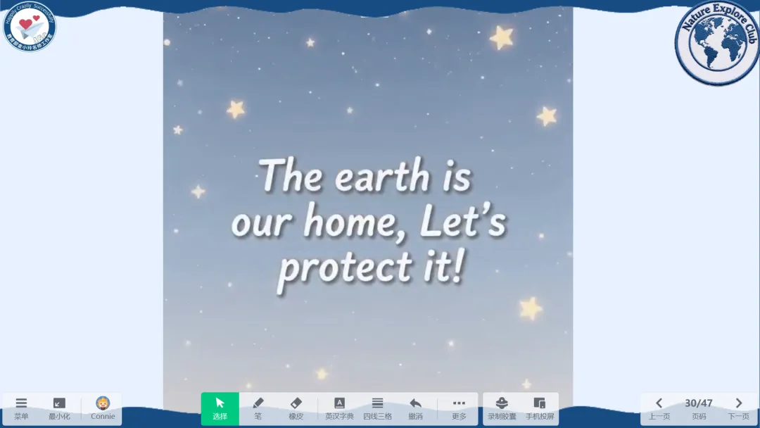 我用剪映合成了一段地球与环保倡议的视频:“The earth is our home. Let’s protect it!”播放时,教室里安静极了,眼里有光,有思考。