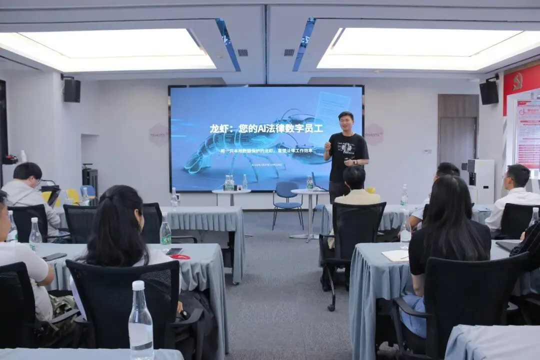特邀嘉宾甘昭泉带来创新性分享《龙虾养殖,白领的数字员工管理,如何用一只本地数据保护的龙虾协助法律工作》。他结合法律行业数据敏感需求,详细介绍“龙虾”AI法律数字员工的核心功能,重点讲解其本地私有化部署架构——合同、案件信息留存内网,通过“龙虾网关”实现数据隔离,从源头保障客户隐私与商业机密。同时,他演示了“龙虾”在合同全生命周期管理、智能案例检索中的应用,其分钟级合同风险识别、检索效率较手动提升10倍以上,为参会律师打开AI应用新视野。