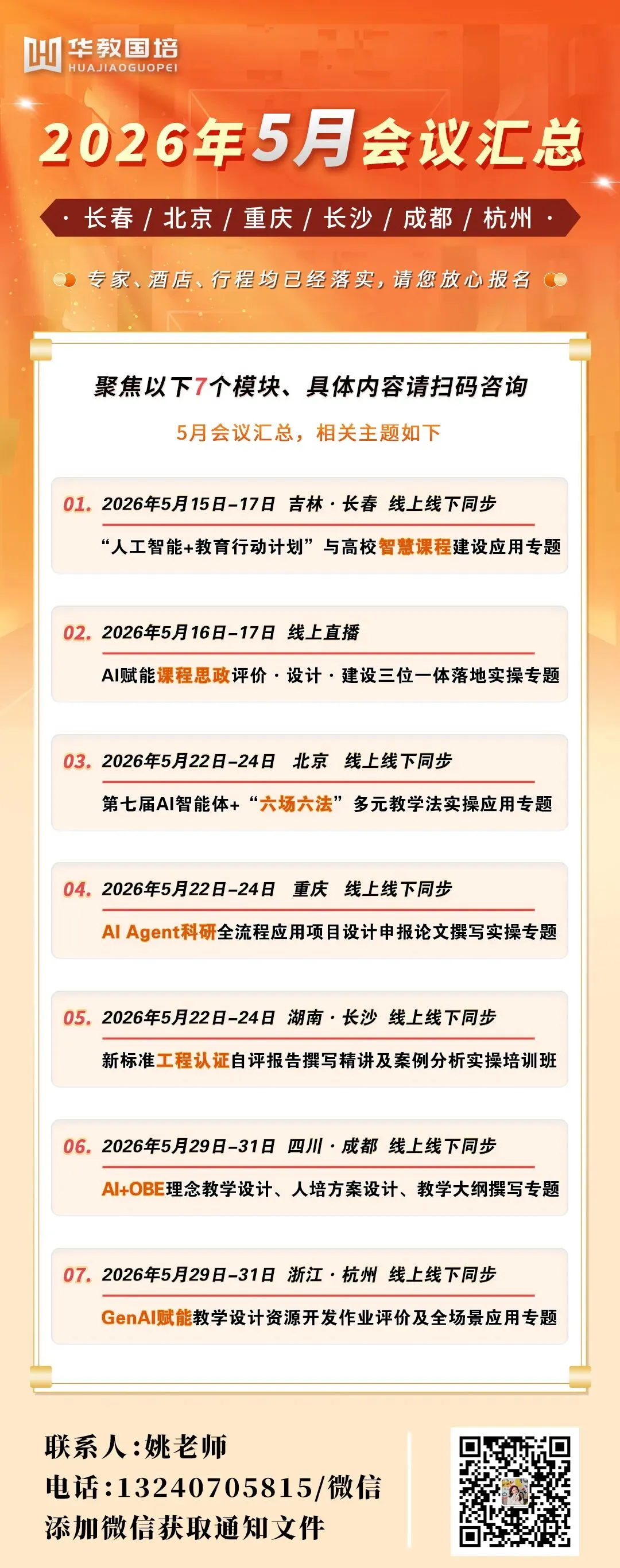 为了帮助高校教师系统掌握AI智能体与多元教学法的融合策略,破解混合式教学、案例教学、同伴学习等实践中的痛点问题,推动课堂教学向人机协同、数据驱动的深度转型,我院决定于5月22日—24日在北京线上线下同步举办“第七届人机协同AI智能体+‘六场六法’多元经典教学法实操应用合集训练营”。现通知如下:
