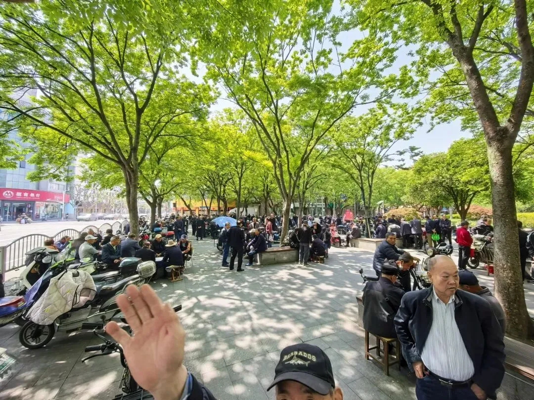 4月24日,上海青浦久违的暖阳破云而出。我一直想写写青浦浦发银行对面白玉兰广场自发形成的“老翁角”,今日正是采访的最佳天气。白玉兰广场林间树荫下,久违出门的城市退休老人们纷纷走出家门,三五成群、四六成堆。