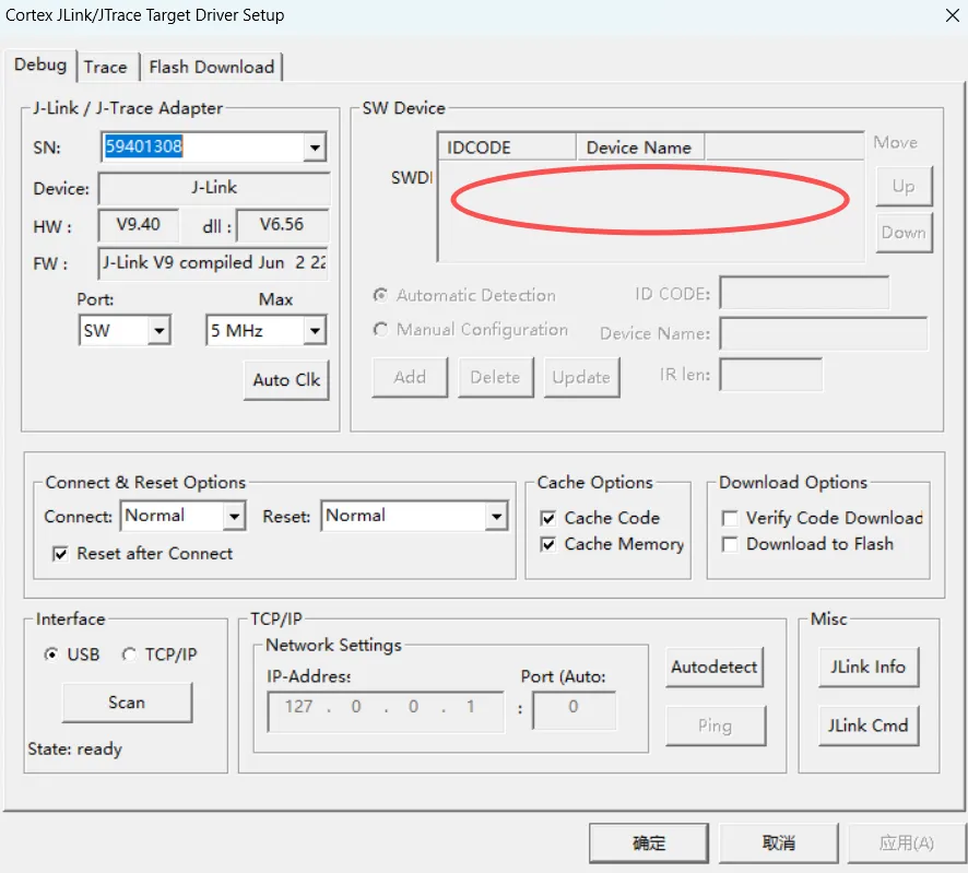 删除旧的 JLINK 配置文件不匹配(JLinkSettings.ini);