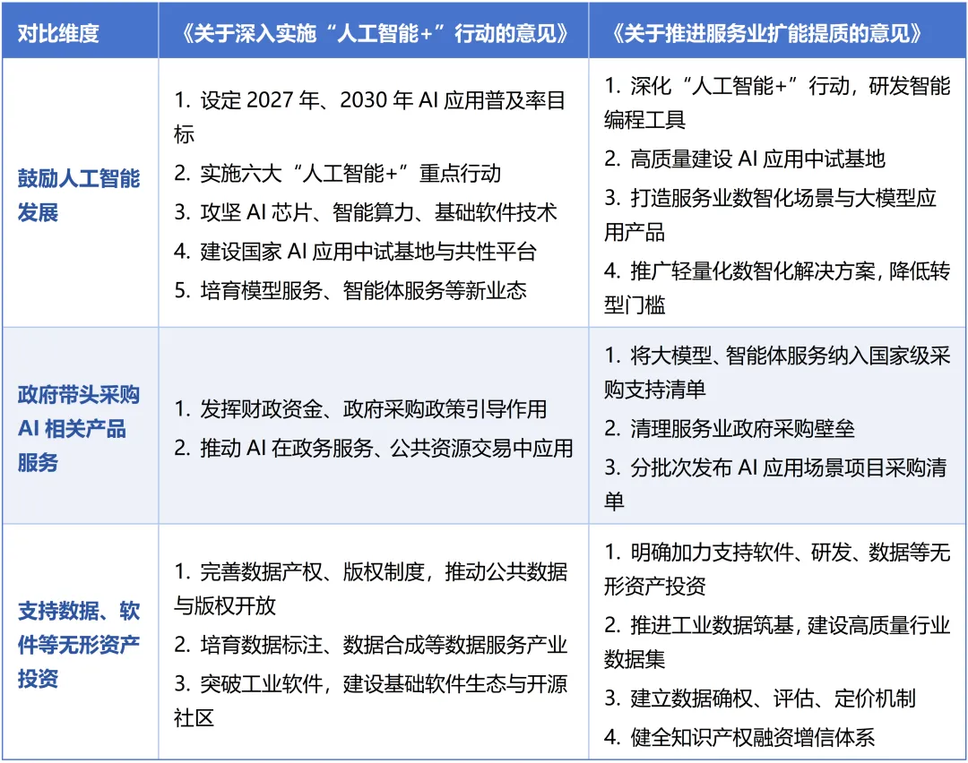 两份文件一脉相承,又层层递进,清晰勾勒出国家推动AI落地的路径: