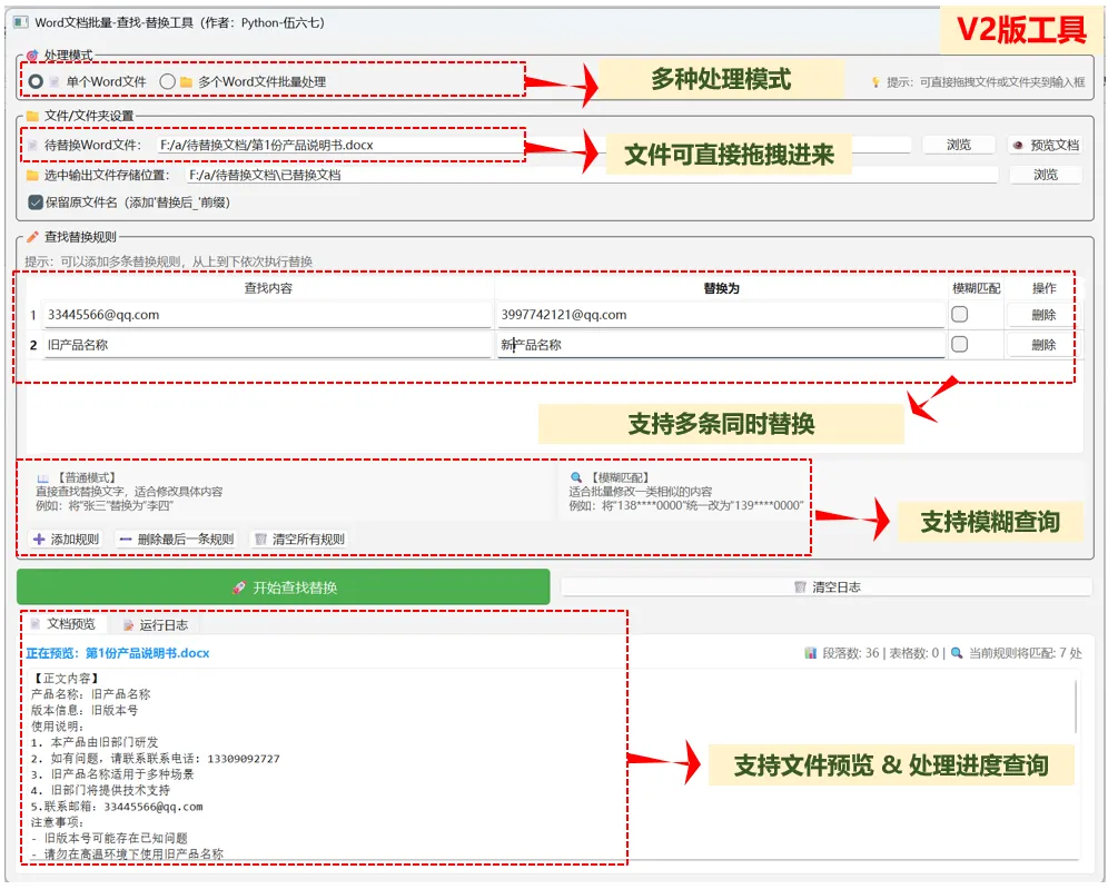 🎯 安排——【Word批量-查找-替换升级V2版】操作更简单、体验更丝滑,一次搞定几百个Word文档的内容修改