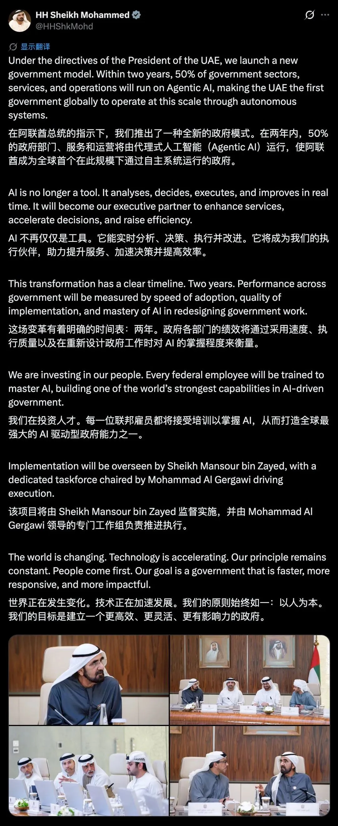 目标成为全球第一个大规模“AI政府”,最高层亲自挂帅