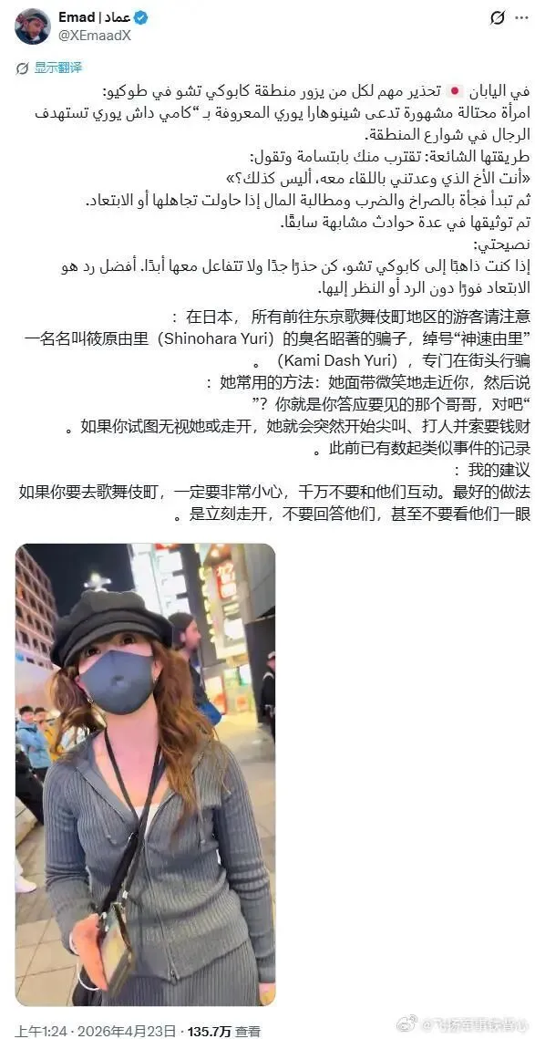 如果你要去歌舞伎町,一定要非常小心,千万不要与她互动。最好的做法是立刻离开,不要回应,也不要看她。