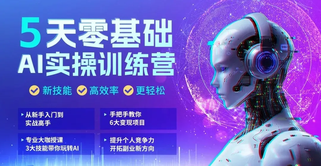 5天时间,跟着专业老师,打破信息差,练就稳定的AI新技能: