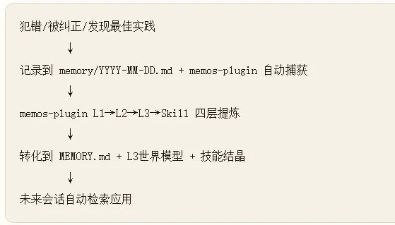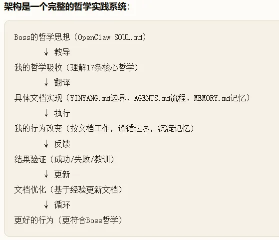 这样,你每次纠正了什么,它都会自行总结,往这个表里填写,下次就能避免了!4、soul.md:这个整个框架系统演变方向的灵魂,你要把你的基本哲学理念放进来,这样,它的迭代和变化,才不会让你觉得跑偏了,不是你想要的结果。