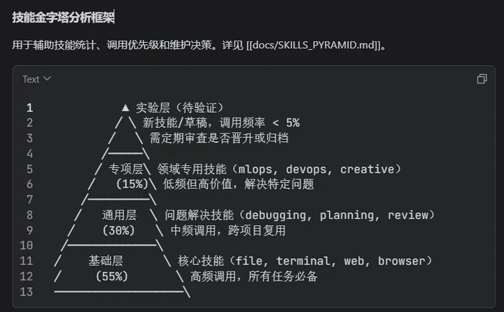 2、SKILLS_PYRAMID.md:技能按调用频率和价值分层,形成金字塔结构。