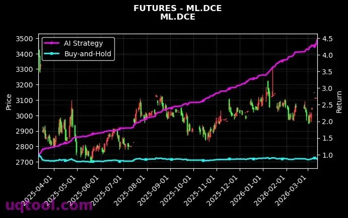 在当前大宗商品市场震荡加剧的背景下,尿素2701组合(ML.DCE)展现出惊人的韧性。基准净值维持1.0的平稳水平,而AI量化策略净值已飙升至3.1,凸显出策略在复杂环境中的卓越表现。