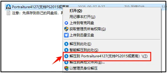 第二步:选中下载后的压缩文件,右击【解压到……】,如下图。