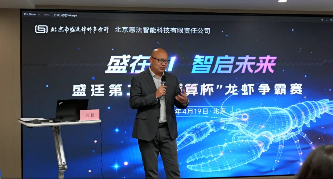 2026年4月19日下午,盛廷律师事务所会议室座无虚席。大屏幕上,“盛在AI 智启未来”的主题字样格外醒目。14:00整,第二届“盛算杯”龙虾争霸赛决赛正式拉开帷幕。与去年相比,本届大赛不仅参赛范围更广——首次面向外部律师及高校开放报名,来自北京大学、中国人民大学、中山大学等高校的学生参加比赛;而且作品质量实现了质的飞跃:从单个点状功能到全工作流整合,从桌面脚本到手机APP、互动网站,选手们用“龙虾”(Open Claw)实现了一个又一个令人惊叹的法律科技应用。