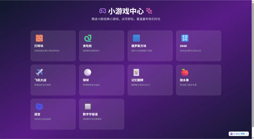 经典小游戏合集:https://kikzku1s6k3n.meoo.fun/