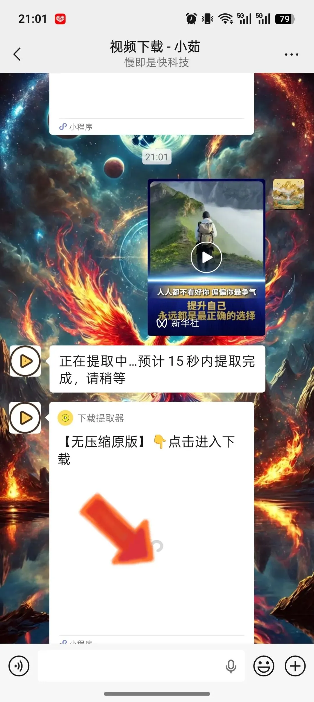 3 机器人会自动解析视频,秒回下载小程序入口;