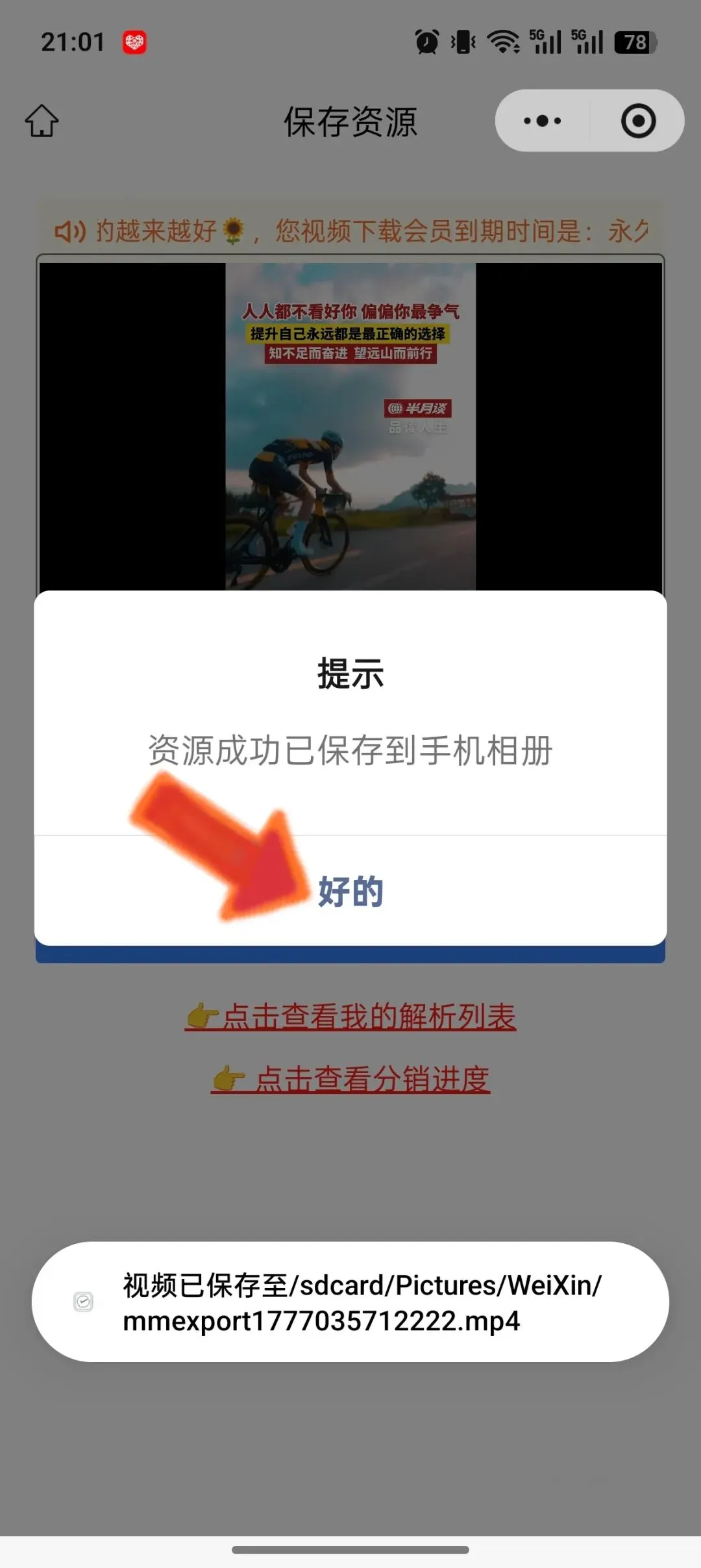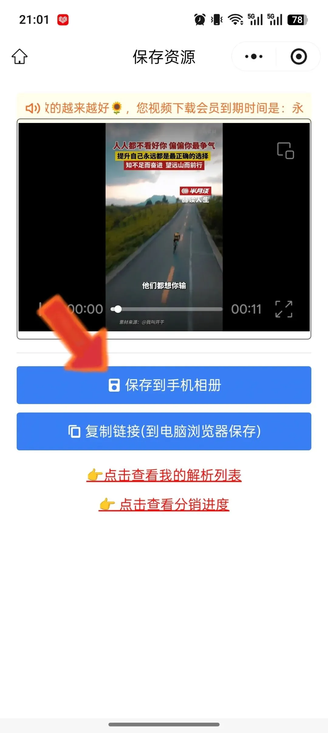4 点开小程序,点击下载,视频直接保存到手机相册,完美实现视频一键下载!