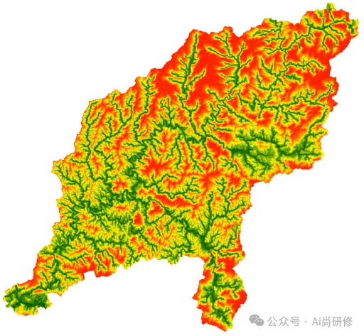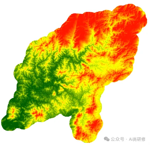 (3)读取无洼地DEM,每个栅格的海拔高度与相应“最近邻河道”的海拔高度相减得到最近邻河道相对高程计算矩阵。