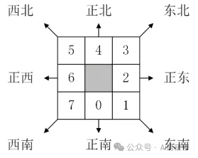 1D+洪水淹没制图软件V1.0版采用经典且相对较为简单的D8流向算法。如图3所示,用0~7来表示中心栅格的8个方向,分别对应正南、东南、正东、东北、正北、西北、正西和西南,流域出口的流向记为9。