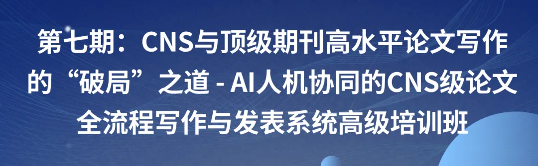 第七期:CNS与顶级期刊高水平论文写作的“破局”之道AI人机协同的CNS级论文全流程写作与发表系统高级培训班