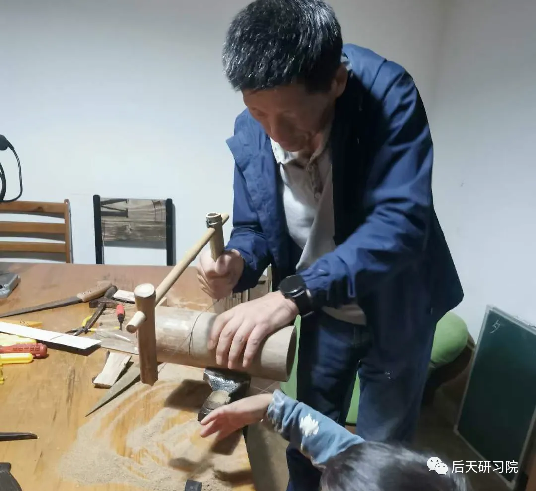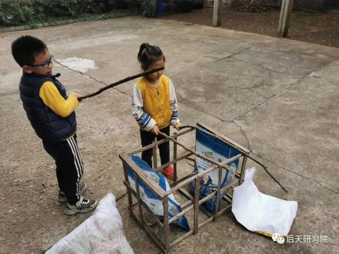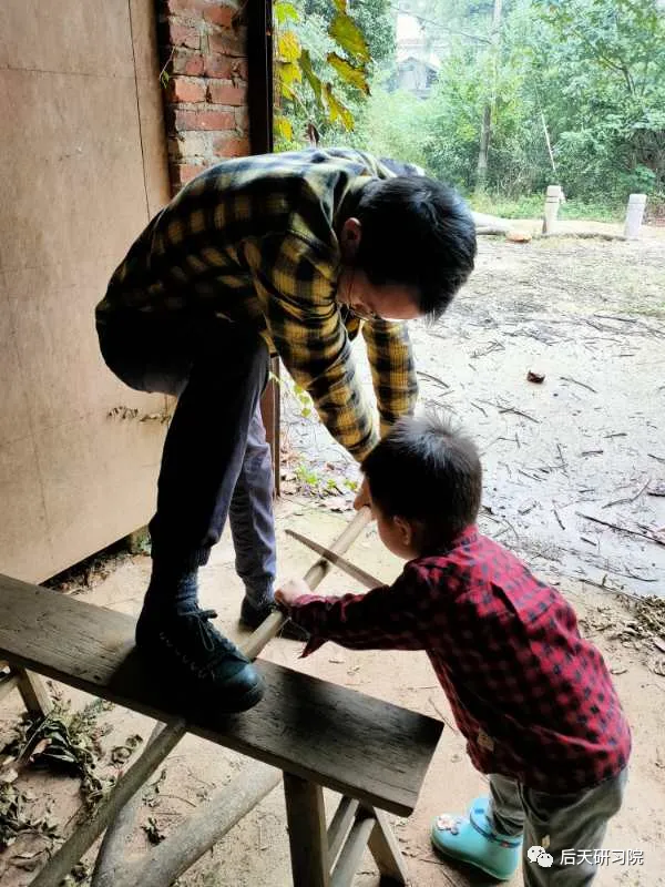 后天研习院教育创新项目老师与孩子们一起制作“云梯”,来作为孩子们锻炼上肢的运动器械。