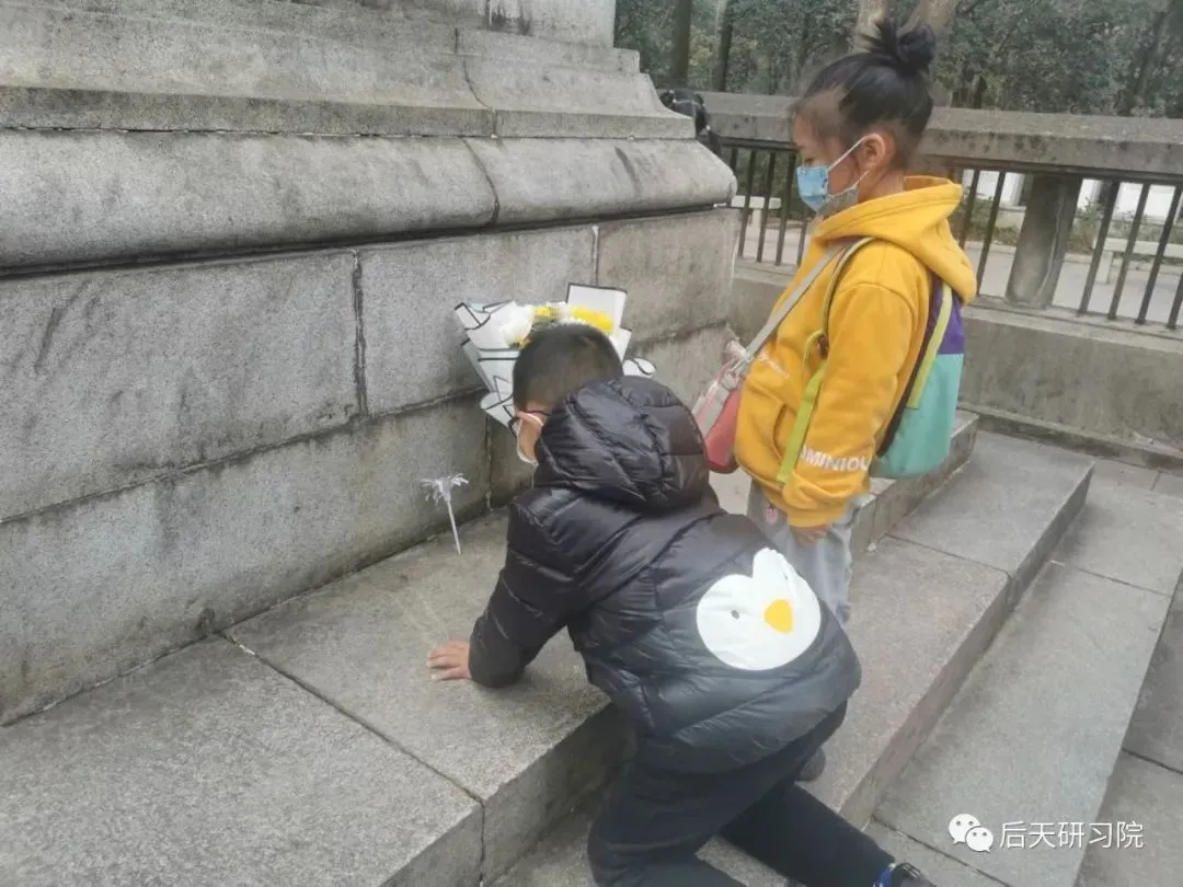 幼儿班小朋友制作纸花前往岳麓山祭拜抗日英烈。