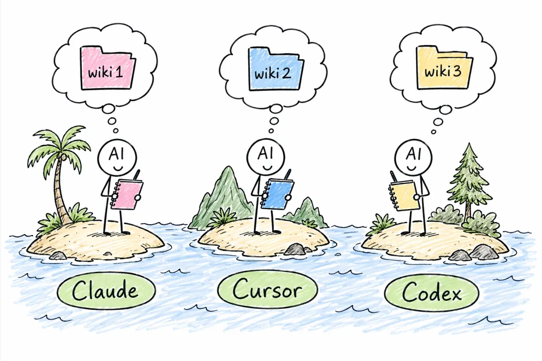「可是我同时用 Claude Code、Cursor、Codex,三个工具各写一份 wiki,等于都没记吧?」